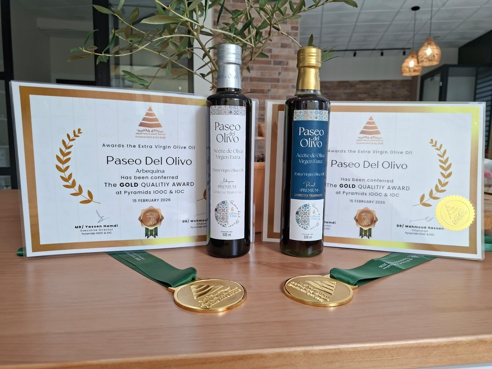 El aceite Paseo del Olivo ha obtenido dos medallas de oro en el concurso PYRAMIDS IOOC & IOC 2026 celebrado en Egipto. La familia Guerrero- ... Plaza es la encargada de extraer este aceite, que ha alcanzado la máxima distinción en esta convocatoria a nivel internacional que ensalza el frutado, y por supuesto, la calidad.
