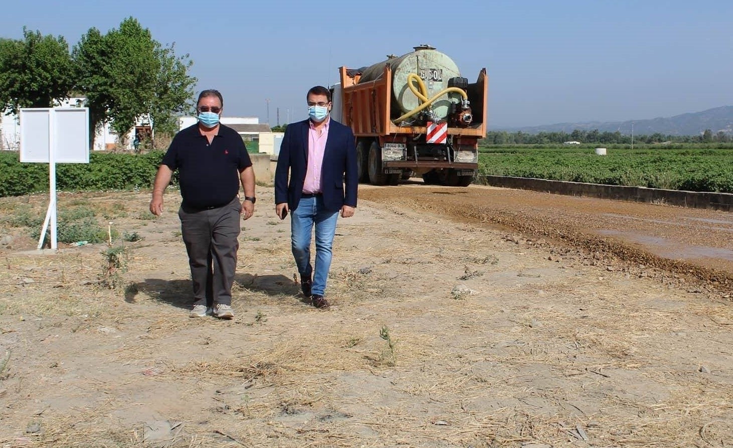 El alcalde en funciones, Pedro Luis Rodríguez y el concejal de Agricultura, Juan Muñoz, (a la sazón delegado de alcaldía en la pedanía de Llanos del Sotillo) visitaron el comienzo de las actuaciones en estos caminos donde se está interviniendo en colaboración con los vecinos con el objetivo de impedir inundaciones.
