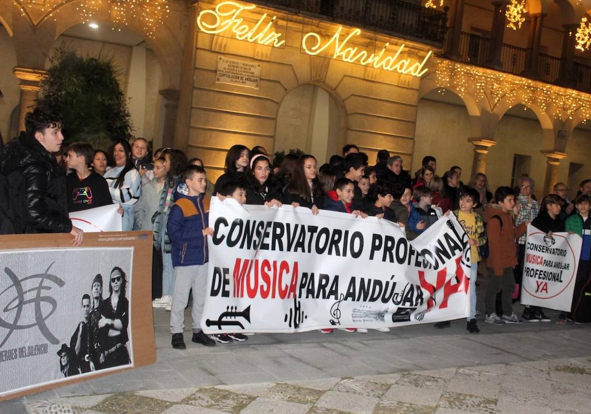 El alumnado del Conservatorio Elemental de Música Juan de Castro, y miembros del Ampa Maestro Perales, que representan a un total de 170 familias, se ... concentraron el pasado viernes por la tarde a las puertas del Ayuntamiento para volver a pedir el grado medio en el Conservatorio, o sea la instauración de las enseñanzas profesionales. El presidente del Ampa, Alfonso Ortega, recordó que se trata de una reivindicación «justa e histórica, porque cuenta con numerosos apoyos plenarios en Andújar y pese a las promesas que hemos recibido».