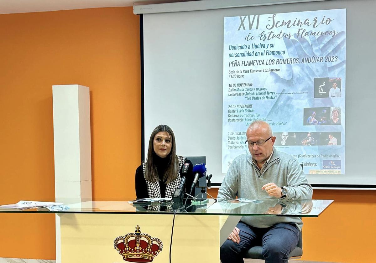 La concejala de Educación y Cultura, Azucena Cepedello, acompañada del presidente de la Peña Flamenca Los Romeros, Antonio Gómez, ha presentado este viernes la programación ... del XVI Seminario de Estudios Flamencos, que estará dedicado a la provincia de Huelva y tendrá lugar durante las próximas semanas en tres sesiones, siendo la primera el viernes 10 de noviembre.