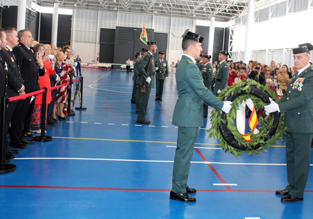 Yel tradicional acto que la Guardia Civil viene desarrollando en su acuartelamiento de Andújar, se trasladó cercano pabellón ferial por la lluvia. Allí se celebró la misa de campaña, el izado de la bandera y el emotivo homenaje a los caídos.