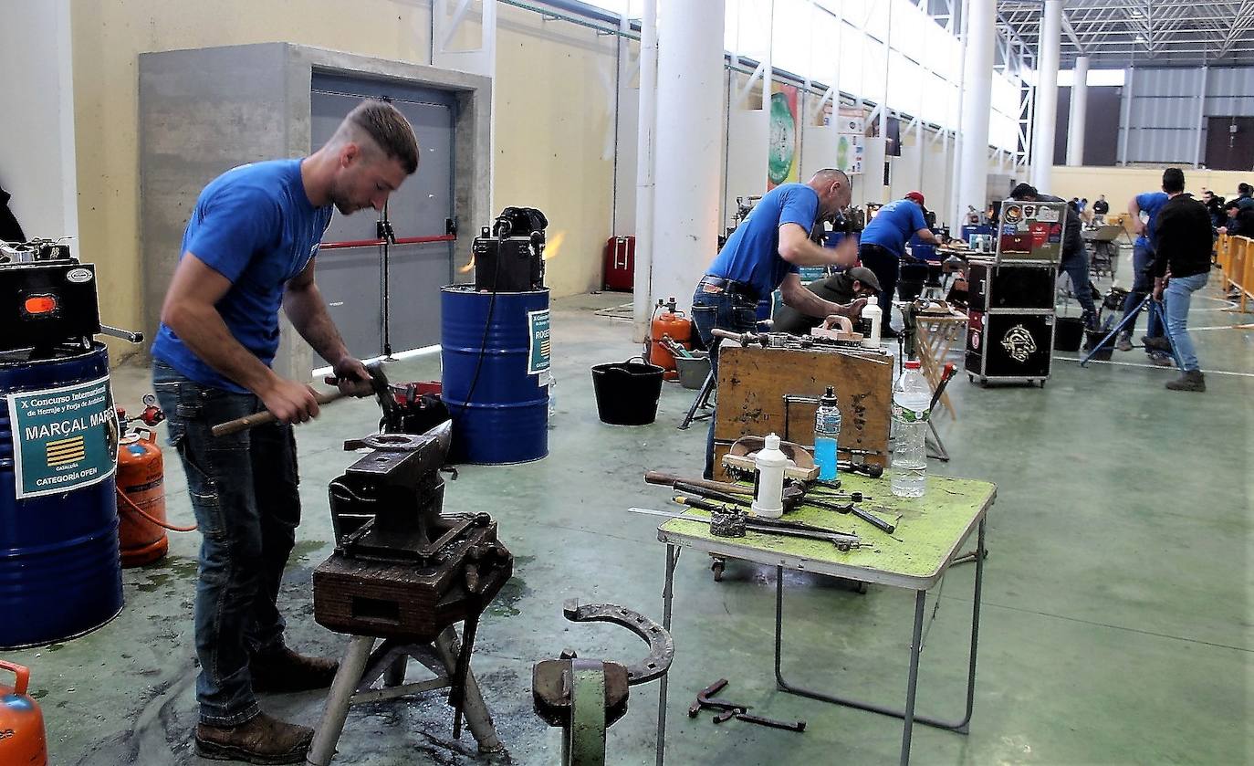 Jueces franceses son los encargados de conceder las puntuaciones de la treintena de participantes que provienen del país galo, de Chile, Alemania y de varias comunidades autónomas, de los que sobresalen los herradores andaluces, que están alcanzando un nivel considerable. Medina ahondó en la gran actividad económica que genera el mundo de la forja en la ciudad, debido a la enorme implantación del caballo. Empresas relacionadas con el sector exponen durante el desarrollo de la prueba