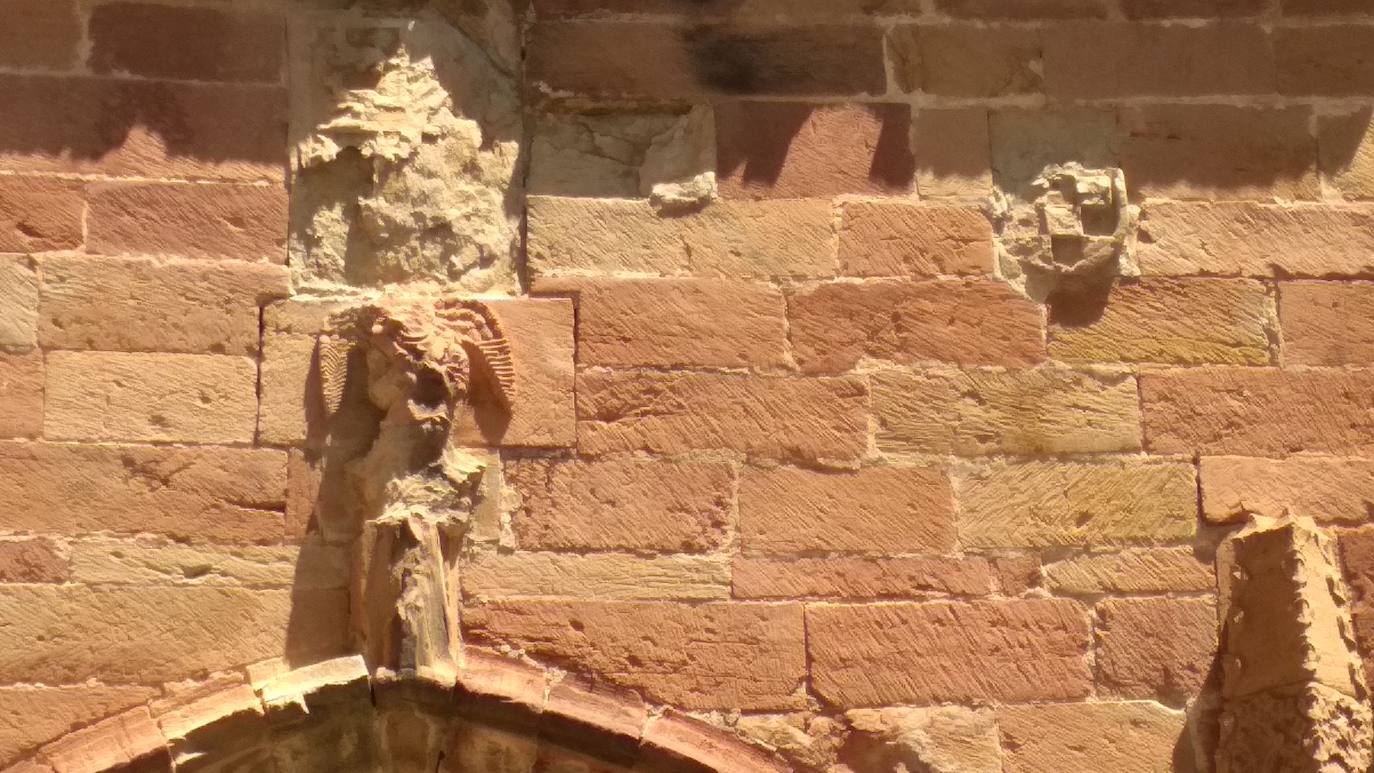 El deterioro ha avanzado mucho en los escudos que ornamentan la puerta