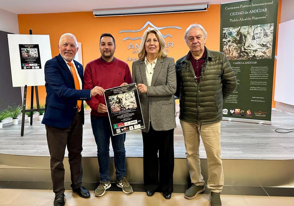 La presentación se realizó ayer viernes en el salón de actos de la Casa Municipal de Cultura y contó con la participación del concejal del Ayuntamiento, Emilio Rodríguez; de la patrona de la Fundación Caja Rural de Jaén, María Dolores Aguayo; del presidente de la Asociación Cultural Anduxar, Juan José González, y de Miguel Alcalde, hijo del poeta Pablo Alcalde Higueras, cuya figura da nombre al certamen.