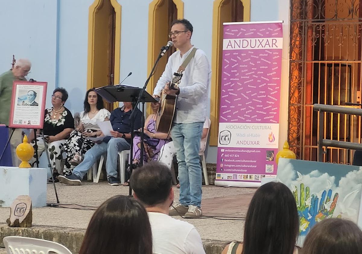 El colectivo cultural Anduxar celebró el acto poético-musical 'Noche machadiana en el Jardín', con motivo del 150 aniversario del inmortal poeta sevillano, Antonio Machado.