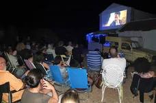 Estos jóvenes probaron con una pantalla que había en el cortijo y empezaron a emitir películas. Se decantaron por películas antiguas y comenzaron su andadura con la proyección de la película de Luis Berlanga 'Los Jueves Milagro'. Aquel día se reunieron 10 amigos y decidieron colocar carteles por la ciudad para promocionar esta iniciativa que sigue llevando por nombre la película de Berlanga. A la semana siguiente acudieron 20 personas. Ya se reúnen cerca de 300 personas que acuden con sus sillas y bocadillos a ver las películas. El agua, la sangría y las cervezas se pueden adquirir al precio de un euro. Fue el propio Miguel Ángel quien le entregó el ramo de flores a su madre, Remedios, en medio del aplauso generalizado de la gente.
