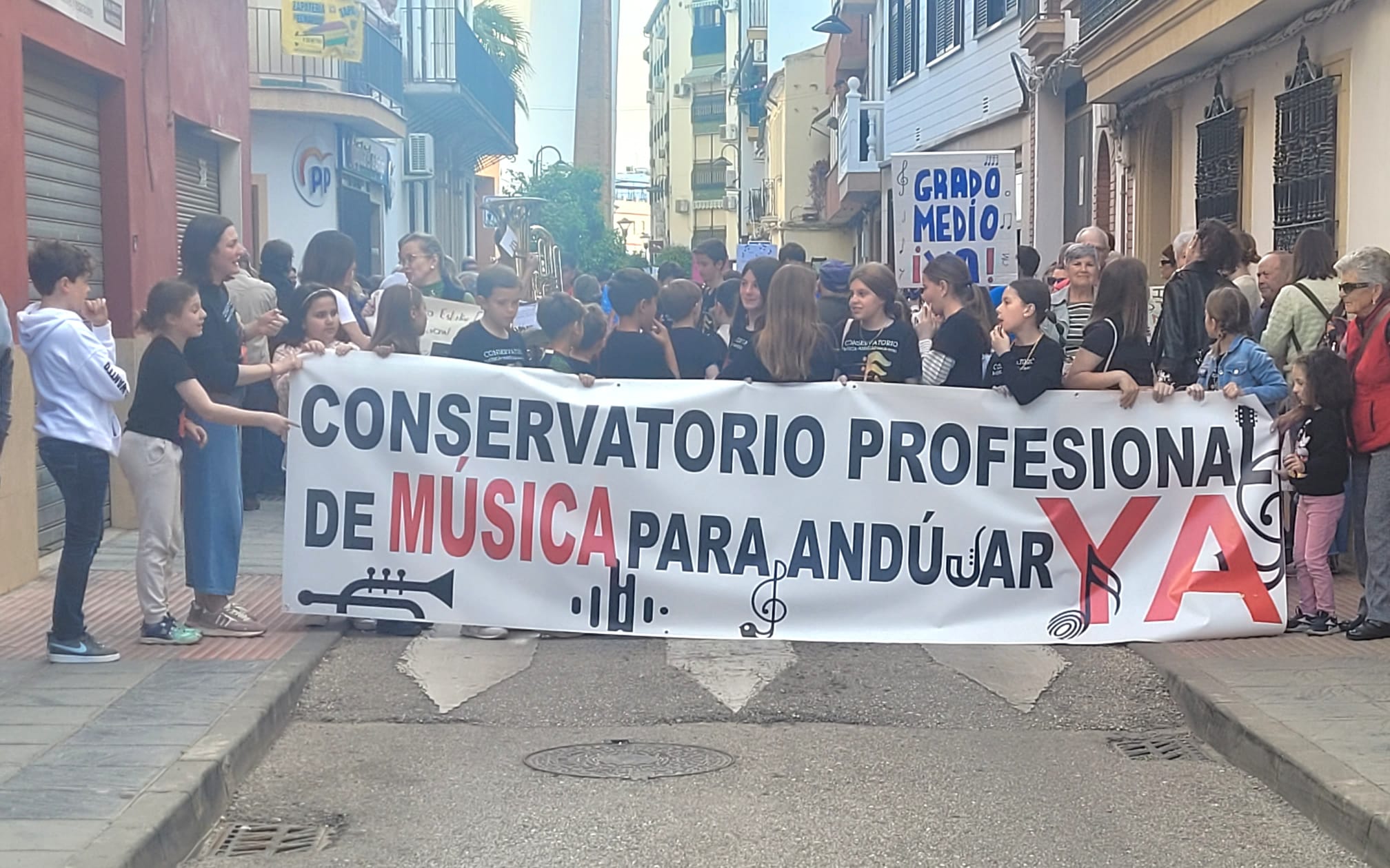 El alumnado, profesorado, su orquesta, integrantes de la Corporación Municipal, padres y madres y representantes de otros colectivos musicales ha apoyado la protesta por las calles de la ciudad. El pleno de la Corporación Municipal aprobó el ayer jueves una moción institucional donde pedía de nuevo a la Junta de Andalucía la implementación de Enseñanzas Profesionales de música en el Conservatorio Elemental de Música 'Juan de Castro'. Según los datos, el primer año no supondría coste económico.