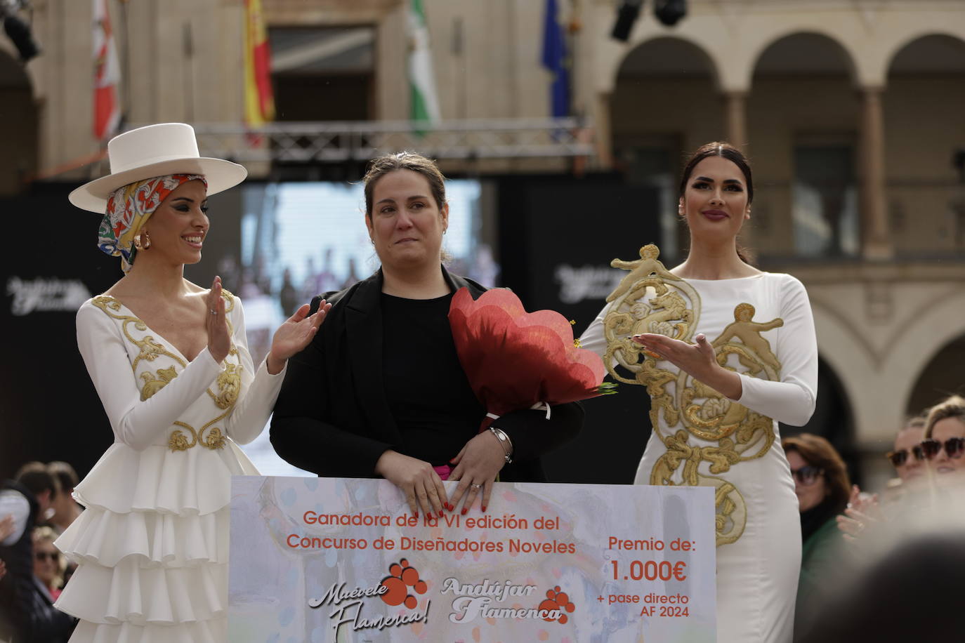 La diseñadora andujareña Inmaculada Martínez se hizo con el VI Certamen de Diseñadores Noveles 'Muévete Flamenca' en un concurso donde las ocho finalistas desplegaron un derroche de imaginación y calidad con los 64 modelos que mostraron sobre la pasarela de la Plaza de España, que dificultaron la deliberación del selecto jurado. Inmaculada se llevó los 1.000 euros del premio y el derecho a participar en la próxima edición de Andújar Flamenca. No pudo contener su alegría ante la entrega de la gente y las miradas de las personas que representan lo más egregio del mundo de moda flamenca. El jurado estuvo compuesto por el diseñador Pablo Lanzarote;el estilista Eduardo Algaba;el director de la Escuela de Peluquería y Estética Nekkar, Alberto Gómez, por la influencer e invitada ideal Margarita de Guzmán y por la gerente de la Cámara de Comercio, Ana Peña. Rocío Ruiz fue elegida modelo del año.