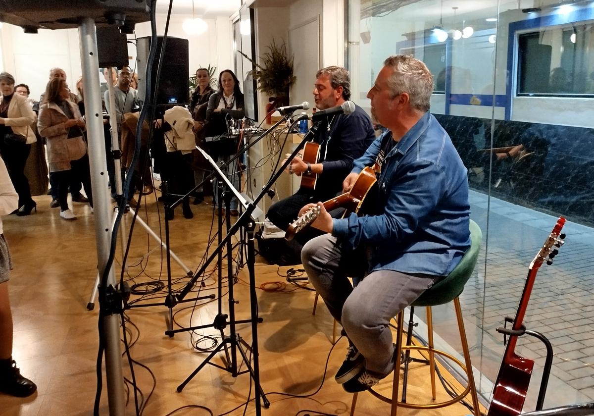Jorge Alcalde y Cristóbal García protagonizaron el concierto acústico en la pastelería Divina PastoraJOSÉ CARLOS GONZÁLEZ