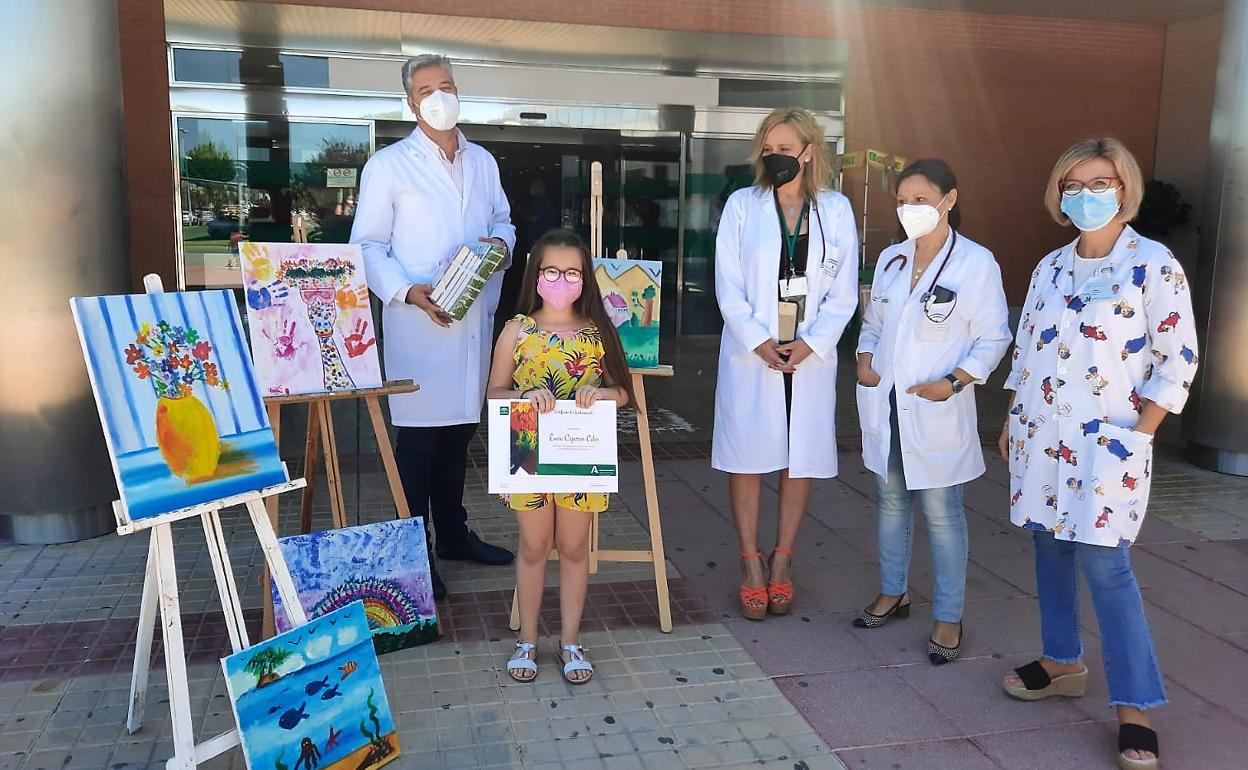 El acto de entrega se realizó en los exteriores del Hospital Alto Guadalquivir, donde se expusieron las obras en seis caballetes, y en la que estuvieron presentes la autora, su madre y su maestra, junto a la directora de Cuidados de Enfermería, Lucrecia Sánchez, el director de Líneas de Procesos Asistenciales en funciones, Rafael Francisco Díez, la directora de Línea de Procesos Pediátricos, Antonia Gómez, y la maestra del Aula Hospitalaria, Mariana Fernández.