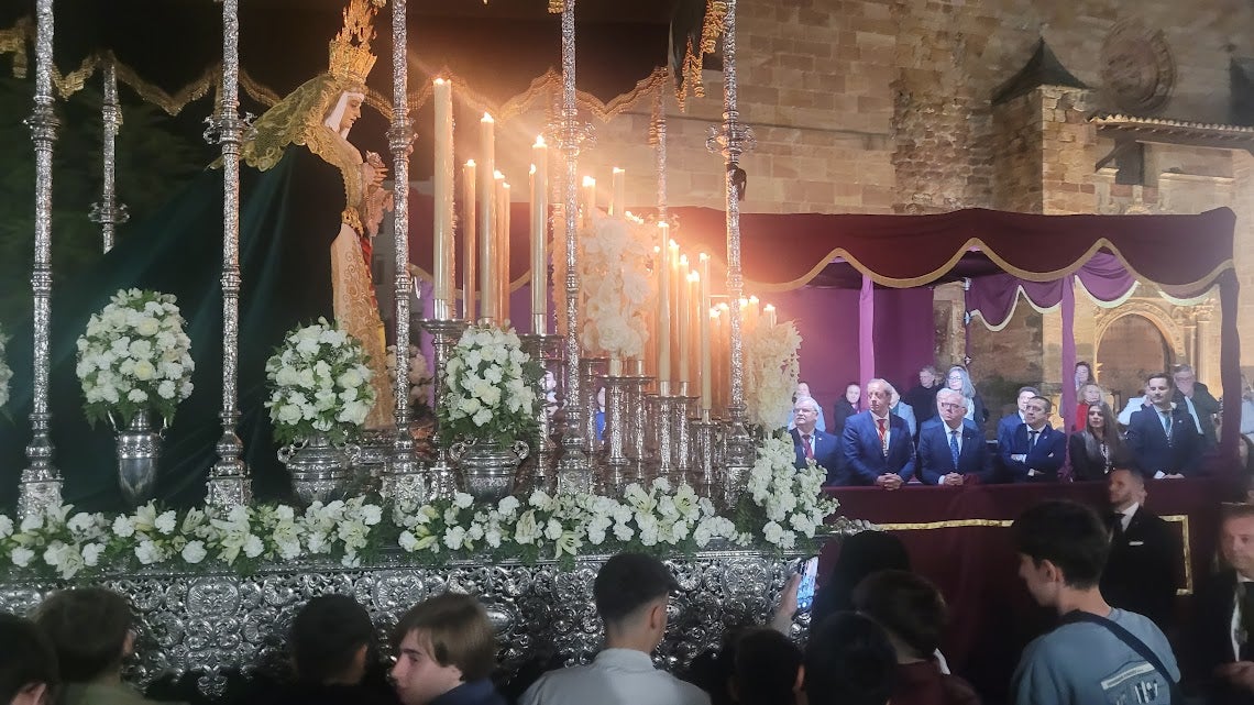 La primera en salir a las calles fue la Hermandad del Buen Remedio. Su paso de misterio, Nuestro Padre Jesús de la Sentencia, traspasó las puertas de la remozada capilla del Antiguo Hospital Municipal, ante el gentío que se congregó en la zona de Doctor Fleming para contemplar ese paso cada vez más pujante que recrea el juicio impío y descreído de Poncio Pilatos a Jesús. La mirada blanca y trasparente de la Virgen del Buen Remedio ejemplifica su 'sevillanía'. Ambos pasos, ligados desde su creación la Orden Trinitaria, protagonizaron en la pasada Cuaresma un hecho histórico en sus 42 años de vida, el traslado recogido por las calles del centro desde Santa María, a su actual sede canónica, la capilla del Antiguo Hospital Municipal. La Banda de Cornetas y Tambores 'Nuestra Señora de la Victoria', del barrio granadino del Realejo, y la banda de música La Estrella, de Córdoba, abrillantaron su tránsito por las lozanas y eternas calles andujareñas.