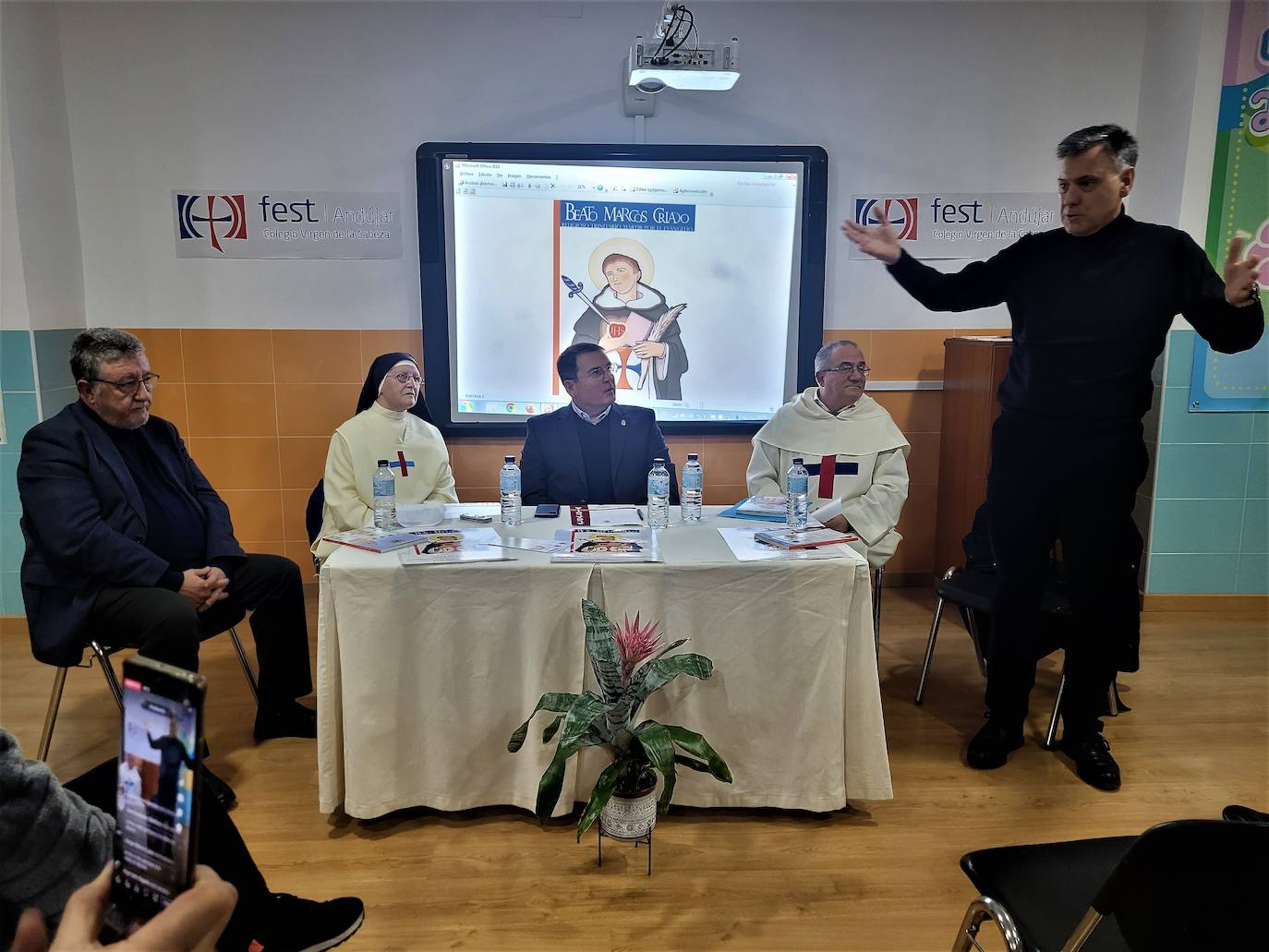 El rector de la Basílica Menor y Real Santuario de Nuestra Señora de la Cabeza, el padre Luis Miguel Alaminos, ahondó en las virtudes que adornaban al beato Marcos Criado, como era la predicación y la obediencia. La superiora del convento de las Madres Trinitarias de Andújar, sor Encarnación Martos, rescató hitos del beato como su beatificación en el año 1899 y el monumento de su figura que se incrusta al lado de la iglesia de San Miguel en Andújar desde la década de 1960. El alcalde, Pedro Luis Rodríguez, agradeció a los promotores del libro su aportación al incremento del patrimonio cultural de la ciudad.