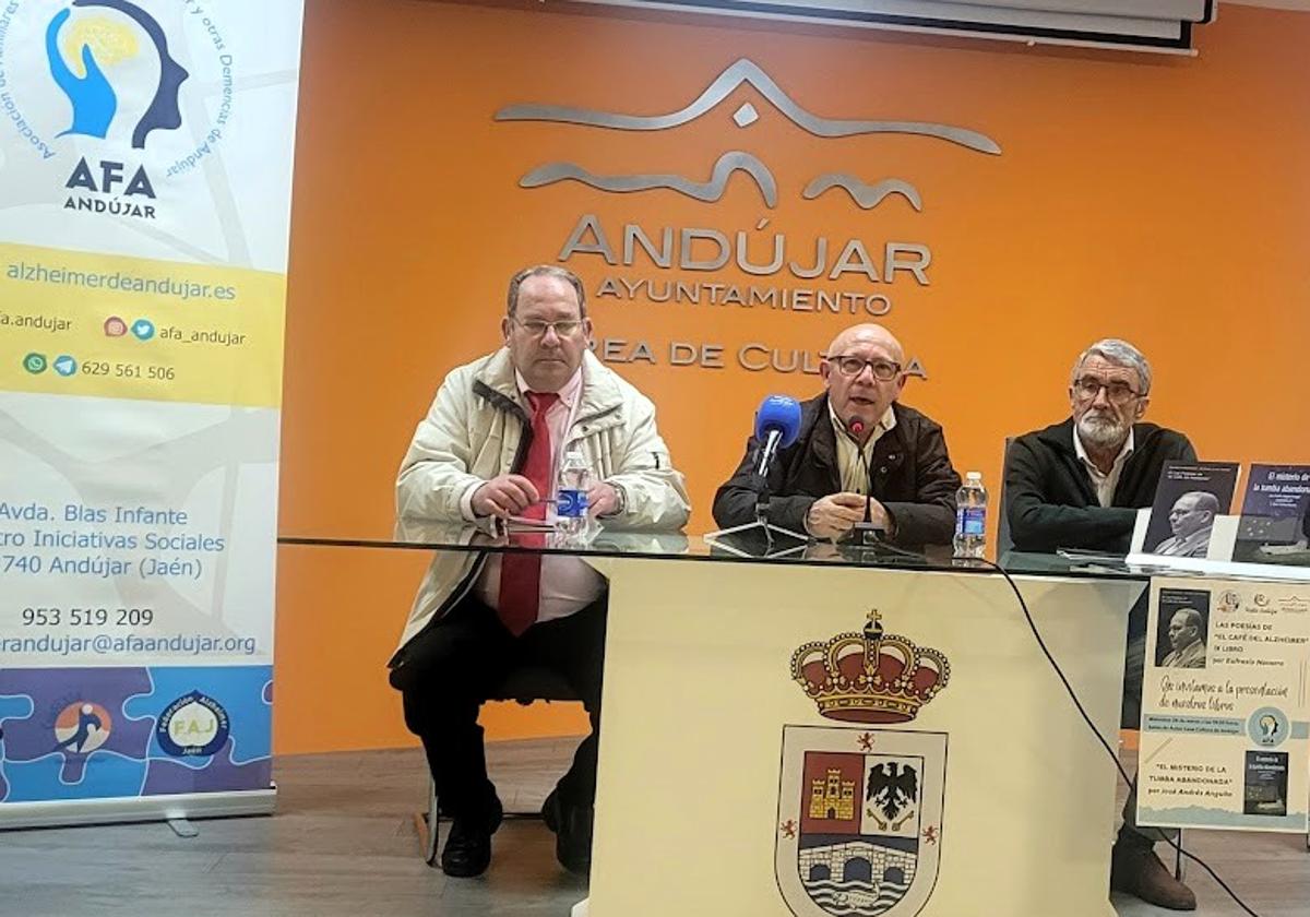 Uno fue 'Las poesías del Café del Alzhéimer', que Eufrasio Navarro ha recopilado de sus recitales poéticos en el programa de Radio Andújar que lleva el mismo nombre. El otro libro presentado es obra del profesor José Andrés Anguita y lleva por nombre 'El misterio de la tumba abandonada' un cuento que está ilustrado por J. César Cámara Roncero.
