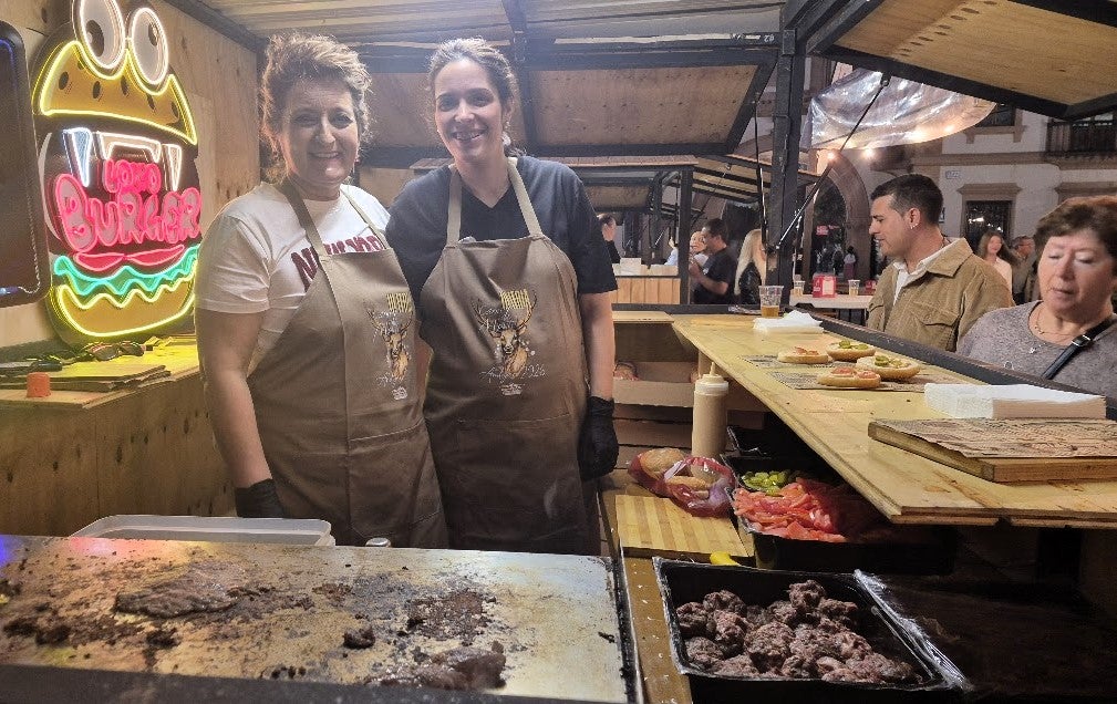 Esta III Feria de la Carne de Monte es exponente de como la vanguardia no está reñida con la tradición. Macarena y Montse preparan una hamburguesa de venado que en su establecimiento están causando una gran sensación a todas las generaciones, por lo que es una forma de perpetuar la cocina tradicional. «Lo hacemos todo casero y con carne de nuestra sierra, y la gente se va a encantada», cuentan.