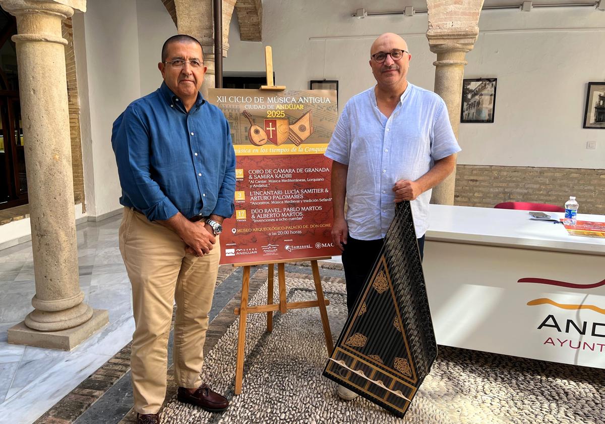El ciclo está coordinado por el productor Aziz Samsaoui, quien destacó la riqueza del repertorio que acompañará esta edición: «Hablamos de música de los tiempos de la conquista, con instrumentos históricos y formaciones especializadas que nos permitirán recrear sonoridades de hace siglos». El propio Aziz participará en el concierto de este próximo día 19 de septiembre con el Coro de la Cámara de Granada que estrenará en Andújar y que llevará a la Alhambra en octubre. Ayer en la presentación, tocó un instrumento antiguo que empleará este viernes.