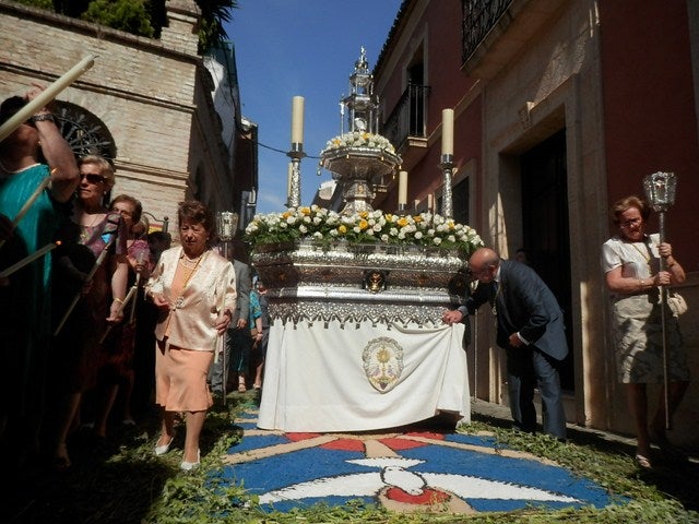 Un año más las religiosas y personal de la residencia de mayores de San Juan de Dios, en la Casa Hogar de Cáritas con la ... hermandad del Buen Remedio engalanaron las fachadas de estas instituciones y los vecinos de la calle de la Alhóndiga, fieles a su tradición de comunidad vecinal que siente de forma especial esta festividad de la Iglesia Católica, volvieron a decorar esta calle de la judería andujareña siendo una referencia en esta festividad. Este año, la Plaza de Santa María volvió a contar con decoración propia, con la típica alfombra de serrín coloreado y un altar en cada uno de sus extremos.