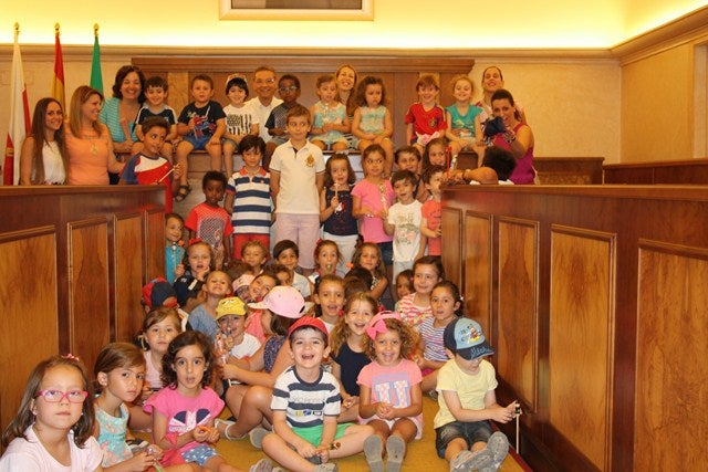 El alcalde de Andújar, Paco Huertas, y la concejala de Educación, Alba Cámara, recibieron en el consistorio a los niños del Aula de Conciliación y a los profesionales que están trabajando con ellos. Este programa trata de facilitar la vida laboral de los padres una vez que los niños acaban la guadería o el colegio y que sus hijos sigan aprendiendo con las actividades que van desarrollando día a día.