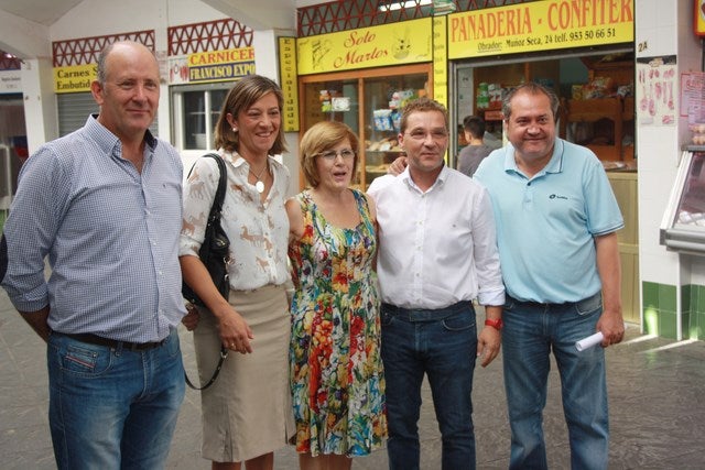 El alcalde de Andújar Paco Huertas, acompañado de la concejala de Comercio, Encarna Camacho, y el concejal de Servicios e Infraestructuras Urbanas, Luís Salas, visitaron ayer miércoles el Mercado de Abastos y mantuvieron una reunión con la presidenta de la Asociación de Comerciantes de la Plaza de Abastos Mercandújar, Sensi Navas y otros representantes.