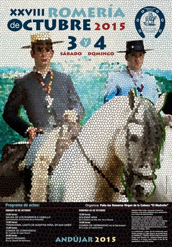 Durante el próximo fin de semana se va a celebrar la ya tradicional Romería de Octubre que organiza la Peña "Los Romeros Virgen de la Cabeza, El Madroño" que este año alcanza su XXVIII edición. Se trata de la Peña Romera de más antigüedad de Andújar que organiza este evento al que acuden multitud de aficionados al caballo que peregrinan por el Camino Viejo hasta el Santuario. El año pasado subieron unos 1.600 equinos, entre mulos y caballos, el doble que en la Romería de Abril.