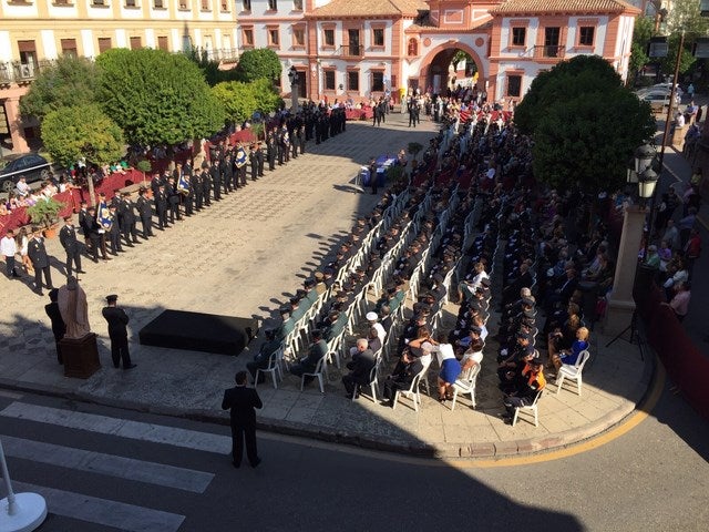 El acto, que se inició con la entrega de la bandera nacional portada por alumnos del colegio Capitán Cortés. Continuó con la entrega a Francisco Huertas Delgado, Alcalde de Andújar, el reconocimiento a la Policía Local de Andújar, que recogió su jefe Miguel Soria, finalizando con el Homenaje y ofrenda a los fallecidos en acto de servicio del Cuerpo Nacional de Policía, y la arriada de la bandera.