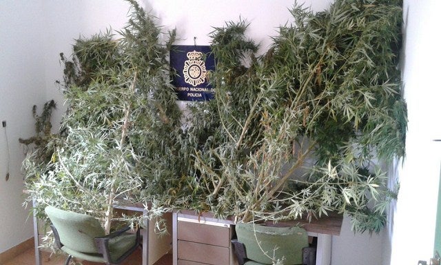 Agentes de la Policía Nacional han detenido a dos personas, un padre y su hijo de veinte años que cultivaban en el patio interior de su domicilio plantas de marihuana para, después secar las hojas y prepararlas para su consumo.