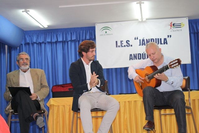 El conferenciante habló de la importancia que tiene el flamenco en nuestra cultura y por qué ha sido nombrado Patrimonio Cultural Inmaterial de la Humanidad. ... Hizo un recorrido por los principales palos, siendo interpretados magistralmente por el cantaor y el guitarrista. Al acto asistieron los alumnos que están participando en el proyecto "LunáTICos 2.0: La lírica y la poesía en el flamenco", coordinado por Begoña Giménez, profesora de Lengua del centro.