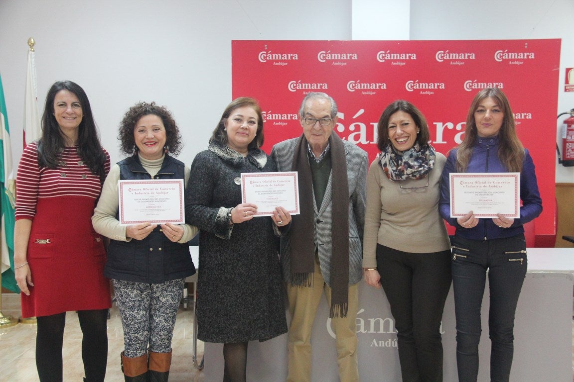 Los establecimientos ganadores del XXII Concurso de Escaparates Navideños organizado por la Cámara de Comercio e Industria de Andújar recibieron sus premios en la sede dela Cámara de Comercio e Industria de Andújar. El presidente de la Cámara, Eduardo Criado; junto a la gerente, Ana Peña y la presidenta del Centro Comercial Abierto, Mª Ángeles Moleón, hicieron entrega de los premios de 200? como primer premio para Flor Regalo; 150? como segundo premio para Bellanovia y 100? como tercer premiado para Mercería Kika.