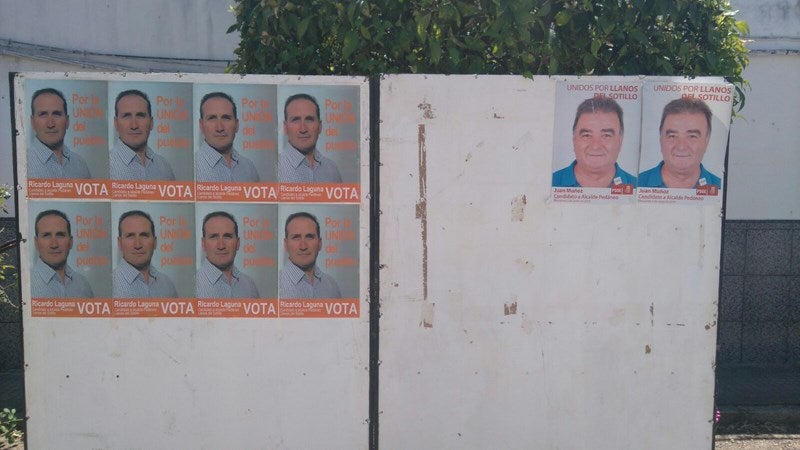 Con un censo de 268 vecinos los candidatos presentados en Llanos del Sotillo son Ricardo Laguna, como independiente, y Juan Muñoz, del PSOE. Ambos han elaborado carteles electorales que han colocado en los paneles ubicados junto a la plaza principal. En las pasadas elecciones de 2012 Trinidad Lorenzo, como independiente, fue la elegida por los vecinos de un total de 266 vecinos censados. Interrumpió su labor como vecina delegada hace unos meses nombrando el consistorio andujareño al concejal, Luís Salas, como representante municipal hasta la convocatoria de elecciones.