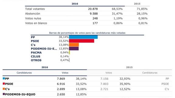 La segunda fuerza más votada ha sido el Partido Socialista que obtuvo el 35,9% en la primera vuelta en diciembre y ahora baja hasta ... el 33,52% con 6.916 votos. Ciudadanos se establece en tercera posición obteniendo 2.699 votos reduciendo ligeramente los resultados de los pasados comicios donde registraron 2.721 votos. La cuarta fuerza en estos comicios registrados en el municipio andujareño ha sido la coalición de Unidos Podemos con 2.650 votos.