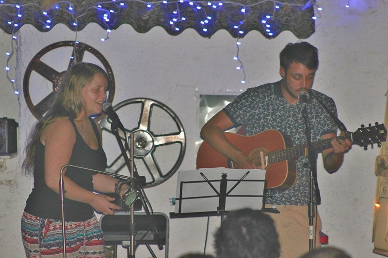 Cristina, más acostumbrada al acústico y a interpretar en solitario, fue la primera en romper el hielo con una canción antes de la sesión de cine ante un numeroso público asistente. Fueron más de cien personas las que se acercaron hasta este paraje para disfrutar a pleno aire libre de sus letras y melodías llenas de folck y rock. La primera vez para esta artista que tocaba frente a sus paisanos tras un largo camino componiendo y mostrando su música en puntos como Granada, Madrid e incluso cerca de Detroit en EEUU durante su estancia laboral.