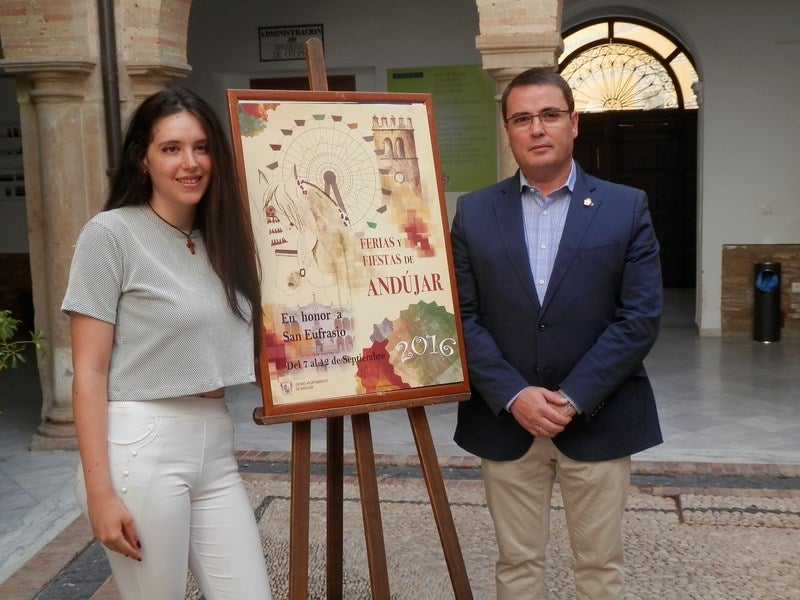 El concejal de Festejos del Ayuntamiento, Pedro Luis Rodríguez, presentó ayer el cartel anunciador de la Feria de Septiembre en honor a San Eufrasio, Andújar ... 2016. Un cartel, obra de Ana Belén Pérez Cuevas, que según el concejal se caracteriza por su elegancia y por recoger motivos propios de la fiesta pero con el sabor de elementos de la ciudad de Andújar.
