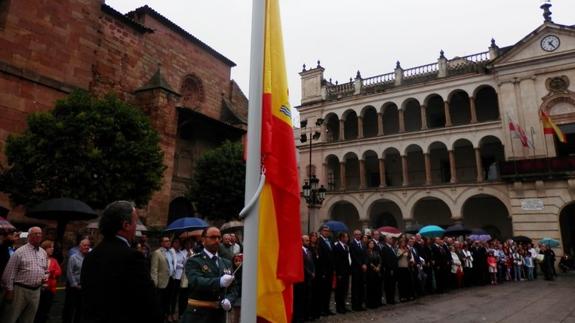 Tras recibir las felicitaciones de los asistentes, los miembros de la Corporación y de las Fuerzas de Seguridad del Estado y demás acompañantes se dirigieron al lugar de la celebración del Día Nacional de España, organizado por el Ayuntamiento, junto a las Fuerzas de Seguridad del Estado. Este año cambió la ubicación a la Plaza de España, donde el alcalde pasó revista a la Unidad de Honores. A continuación se izó la bandera nacional, que había sido portada por miembros de los tres cuerpos a los sones del Himno Nacional.