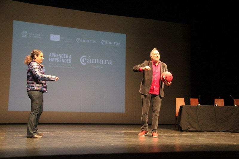 Más de 450 personas entre empresarios, comerciantes y alumnos de centros educativos de Andújar asistieron ayer a la jornada promovida por la Cámara de Comercio, Industria y Servicios de Andújar “Emprendimiento y confianza”. El coach, escritor y profesor de Deusto Bussines School, José María Gasalla, ha ofrecido una conferencia de motivación emprendedora que ha obtenido la total implicación de los asistentes.