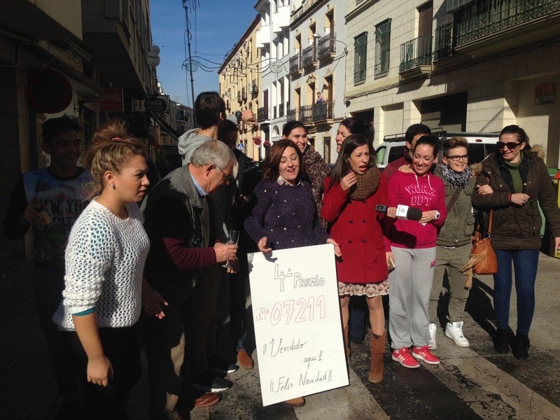 El principal foco de alegría y de atención de todos los medios ha sido calle Calancha en la Administración nº 1 La Morenita. Desde allí se han vendido 410 décimos del número 07.211 agraciado con un cuarto premio, 20.000 euros el décimo. El responsable de la administración, Carlos Cerrillo mostraba su satisfacción una inmensa algería. Es la primera vez que repartimos un premio en el Sorteo de Navidad.