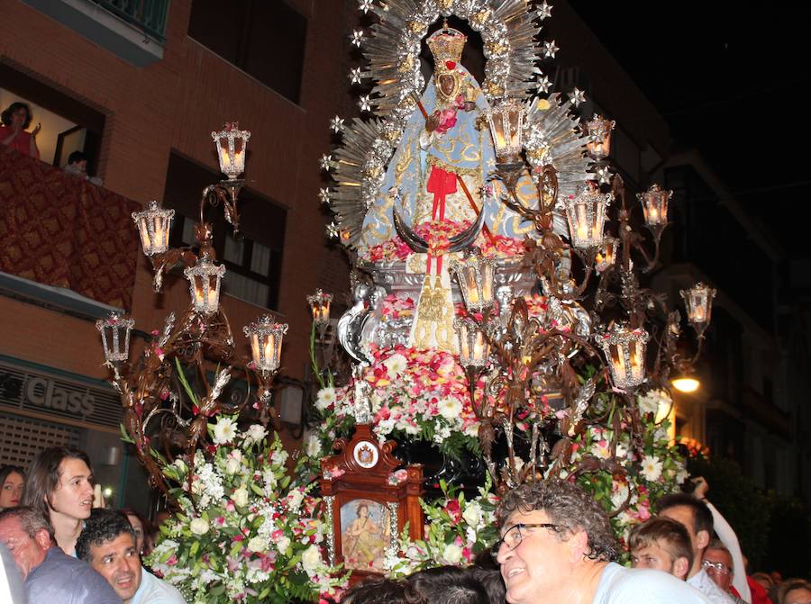 Anoche sábado culminó la novena que se profesa todos los años a la imagen de la Virgen de la Cabeza que se venera en la ... ciudad con la procesión de regreso a la ermita de la calle Ollerías desde la iglesia de San Miguel, donde el nuevo hermano mayor, Ramón Pérez Melero tomó el cetro que le cedió su antecesor, José Antonio Hinojo, a la puerta de la ermita, en una estampa preñada de costumbrismo, declamada por el padre Domingo Conesa, ante la gente que se agolpó en la zona y el balanceo incesante de la Virgen por los anderos y la emoción y sollozos de los protagonistas.