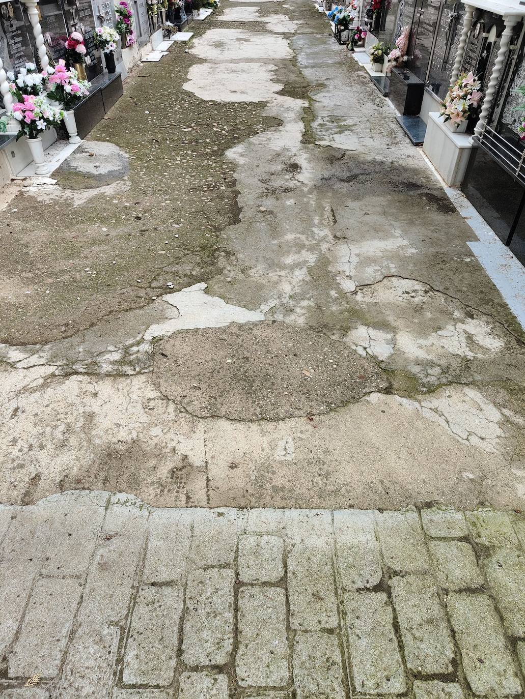 Las personas usuarias indican que el ... asfaltado no se halla en las mejores condiciones, debido a su deterioro, y también apuntan a una falta de limpieza. Indican que los charcos llegan a afectar hasta las mismas lápidas. Esta circunstancia ha provocado ya varias caídas.