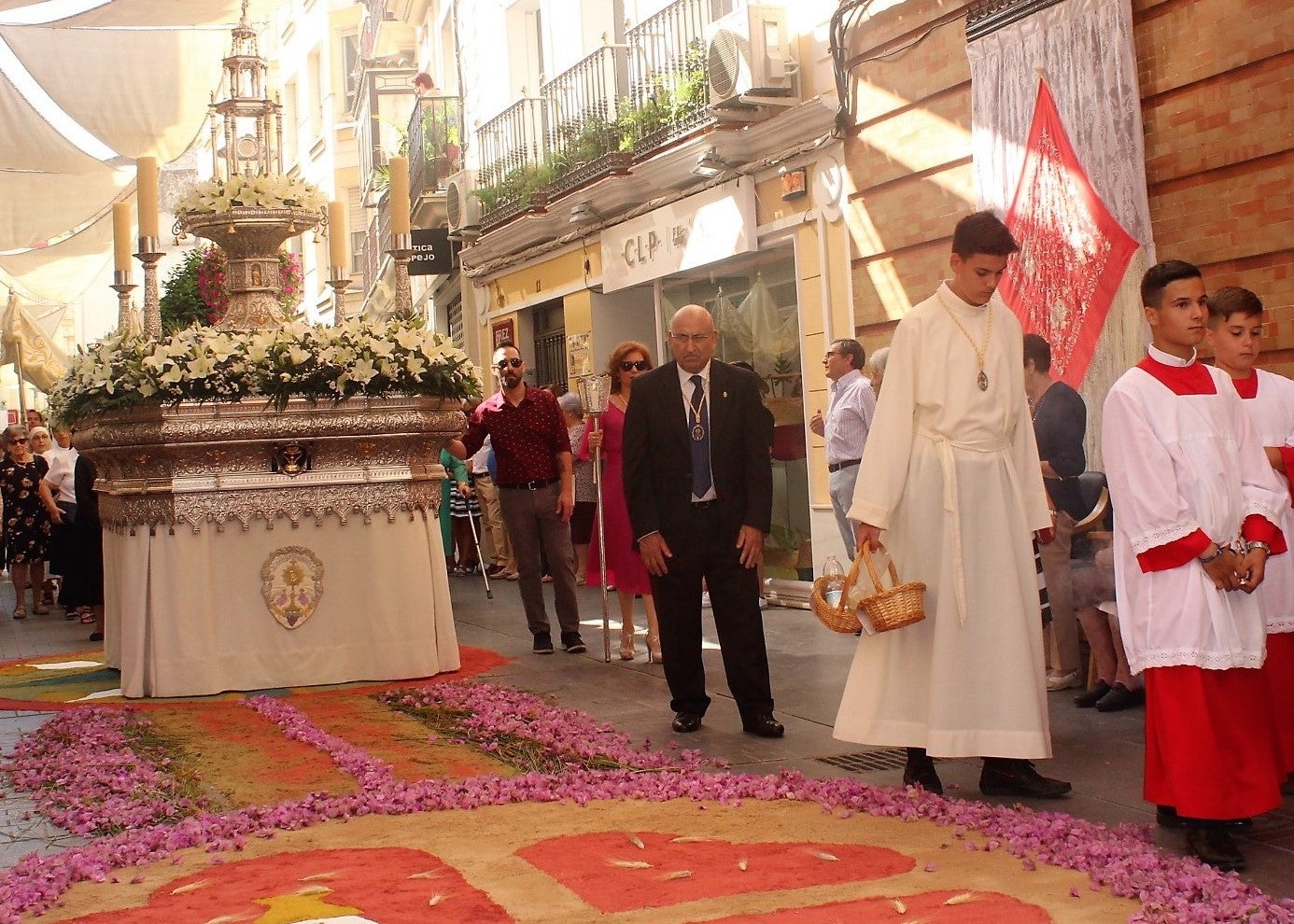 Las calles de Andújar se han alfombrado y revestido de solemnidad hoy domingo en una calurosa mañana para ser testigo del procesionar del Santísimo Cuerpo ... Sacramentado, que ha partido a las 10 de la mañana de la parroquia de Santa María la Mayor.