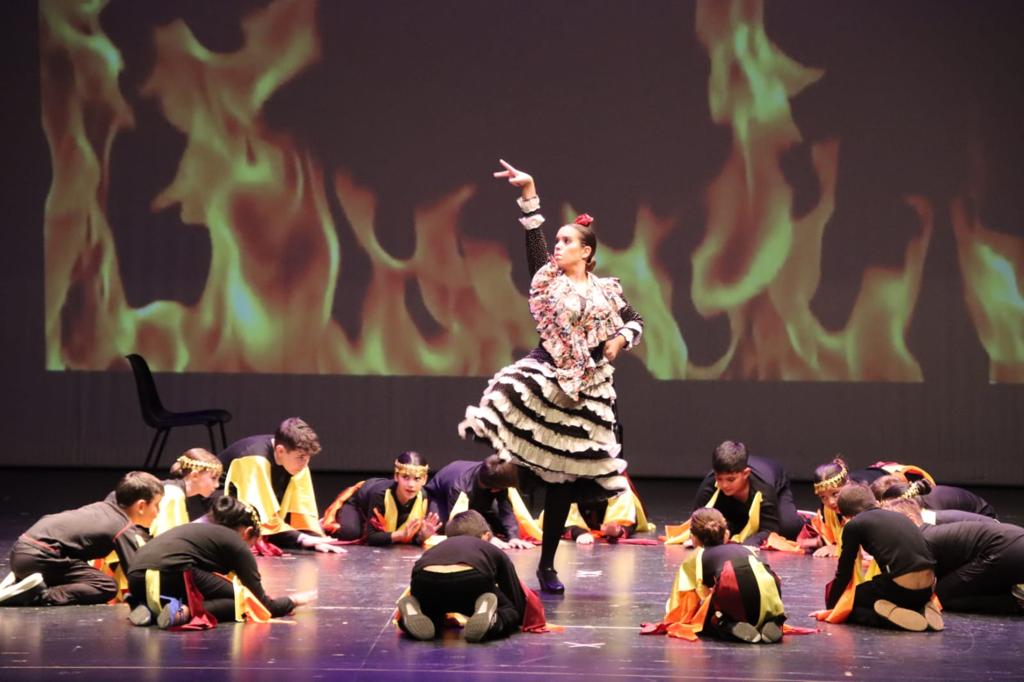 El acto estuvo amenizado por la cantaora Lidia Pérez, el guitarrista Fran Ramírez y la bailaora María Sierra. Un grupo de alumnos de este centro educativo realizó unas interpretaciones al baila, que encandilaron al público. La actividad estuvo vinculada a la proyección que ha tenido el mundo del flamenco en el cine.