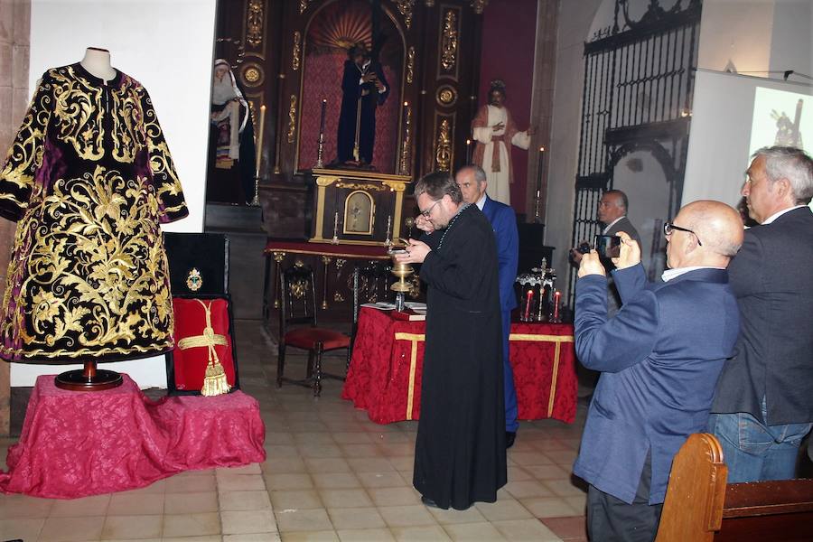 La Cofradía de la Santa Vera Cruz ha cumplimentado un sueño que llevaba persiguiendo desde hace cuatro años. El grupo de costaleros y devotos ... de Jesús Nazareno han hecho realidad la nueva túnica de linajes para esta imagen que en esta Semana Santa cumple 20 años y que procesiona con una sobrecogedora sobriedad en la tarde-noche del Domingo de Ramos. La obra ha sido diseñada por uno de los referentes artísticos de Andalucía, el granadino Álvaro Abril y elaborada en los talleres del obrador de bordados, el también granadino, Jesús Arco , quien estuvo presente en la bendición del pasado sábado en la parroquia de San Bartolomé.