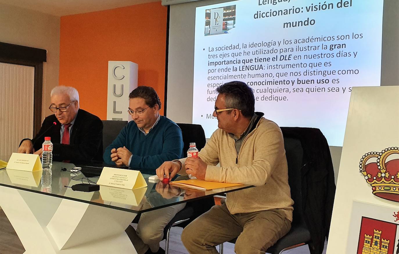El salón de actos de la Casa de la Cultura fue escenario de la inauguración del curso académico de la Universidad Nacional a Distancia (UNED) ... en la ciudad, con la conferencia que pronunció Manuel Valdivia Milla que abordó el tema 'Sociedad, ideología y académicos en el diccionario de la lengua española' que los consideró los tres ejes que ilustran la importancia que tiene el Diccionario de la Real Academia de la Lengua Española.