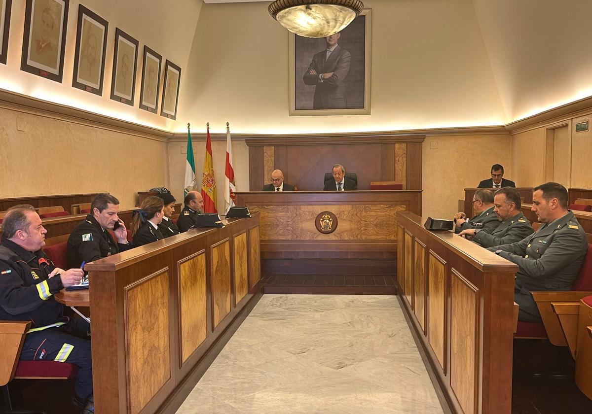 La sesión, presidida por el alcalde de Andújar, Francisco Carmona, contó con la presencia del subdelegado del Gobierno en la provincia, Manuel Fernández, así como de representantes de la Guardia Civil, Policía Nacional, Policía Local, Policía Adscrita de la Junta de Andalucía y del Cuerpo de Bomberos.