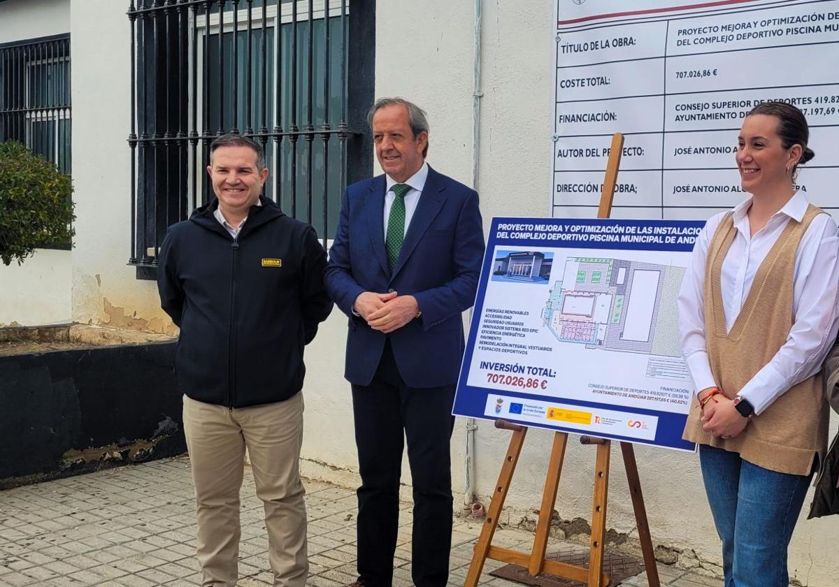Así lo afirmó el primer edil, quien estuvo acompañado en las instalaciones por la concejala de Deportes, María José Fuentes; el director del centro deportivo, Paco Toribio; del director de la obra José Alcalá, y de la jefa de la empresa constructora de la obra, María Luisa Aguayo. La inversión total de este proyecto asciende a 707.026 euros, de los cuales el Ayuntamiento de Andújar aporta más del 40% (287.197 euros), a los que se suman la financiación del 59% (419.829 euros) a través de los Fondos Europeos 'Next Generation'. Los trabajos consistirán en la renovación completa de los vestuarios, la reorganización de espacios, la modernización de duchas y sanitarios y la optimización de la distribución para mayor comodidad y funcionalidad.