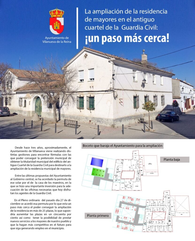 El Ayuntamiento de Villanueva de la Reina está cerca de ampliar la residencia de mayores en el antiguo cuartel