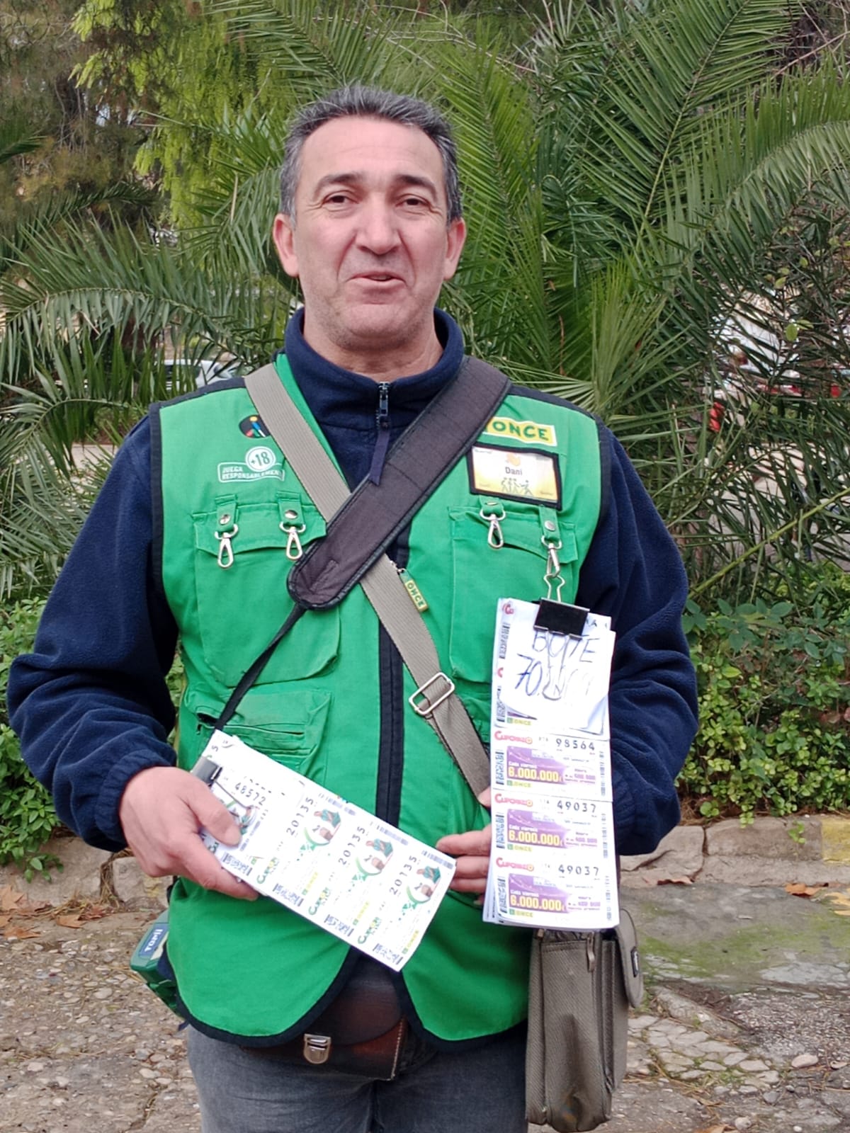 El vendedor de la ONCE Daniel Rodríguez Muñoz es quien ha repartido los 350.000 euros en su ruta de venta por las localidades de Porcuna, Higuera de Calatrava y Santiago de Calatrava. Daniel trabaja en la ONCE desde diciembre del año 2000.