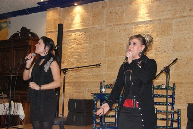 Después de hacer un pase cada uno, remataron la actuación con unos fandangos a dúo. Muy aplaudidos fueron los dos como también lo fuera el guitarrista que los acompañó. La aparición más esperada fue la de las cantantes de copla Paquita Ogalla y María José Gómez, dos jóvenes promesas loperanas que ya van siendo conocidas en los escenarios. Los salones Bascena acogieron el espectáculo. Allí acudieron más de 150 personas entre socios y aficionados en general.