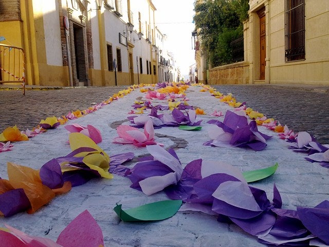 Tan sólo cuatro calles de la localidad fueron engalanadas este año para celebrar el Día de Jesús en Lopera. Las calles Hospitalico, Doctor Marañón, Sierpes y Nueva fueron las únicas adornadas para recibir la imagen de Cristo con la cruz a cuestas. La muerte de algún vecino de esas calles, el luto de sus familias y la solidaridad del resto de sus habitantes ha sido el motivo.