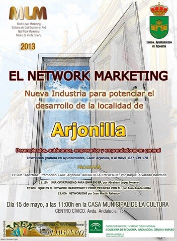 El próximo 15 de mayo el Ayuntamiento de Arjonilla y el CADE Arjonilla a través de la Red Andalucía Emprende, organizan unas jornadas para acercar las técnicas de Network Marketing a las empresas del municipio y aplicarlas para la búsqueda de nuevos mercados y clientes. Dirigidas a empresarios y emprendedores también pueden asistir autónomos y desempleados.