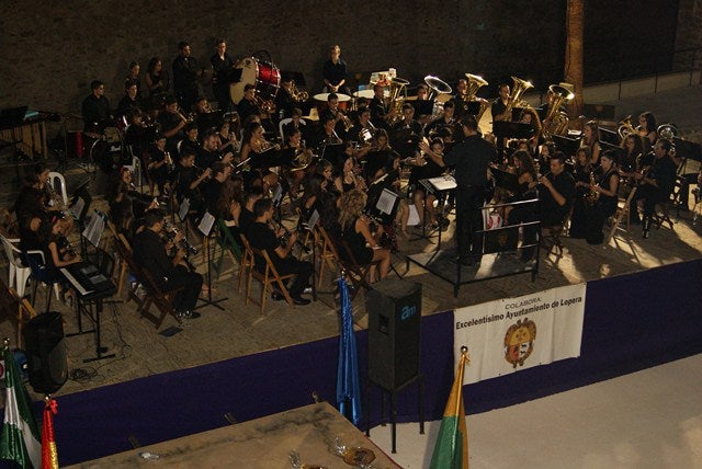 El momento más esperado de la noche fue, sin duda, la aparición de la Asociación Musical "Pedro Morales" de Lopera. El Patio de Armas del Castillo completó el aforo para oír a la anfitriona. El pasodoble de José Franco, Agüero, una selección de 'La Gran Vía' de Federico Chueca y la obra de Eric Whitacre 'Godzilla Eats Las Vegas' fueron las obras elegidas para la ocasión.