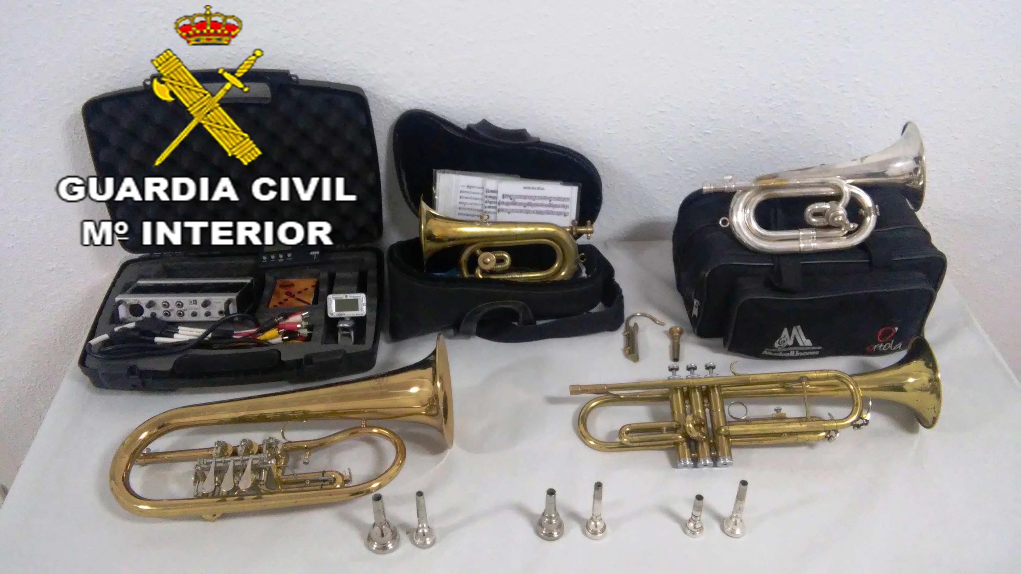 Con las detenciones se han recuperado dos cornetas, una trompeta, un fliscornio, siete boquillas de diferentes instrumentos de viento, un atril para móvil de corneta, tres afinadores y componentes electrónicos.