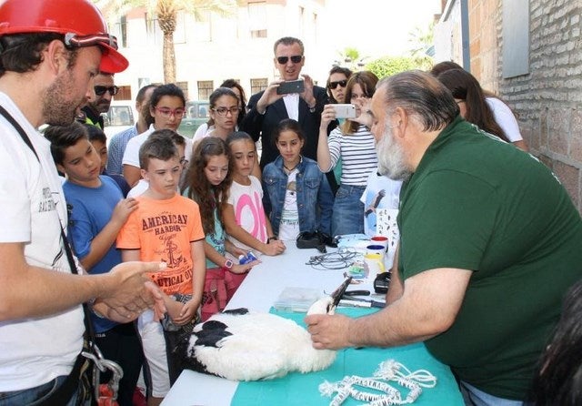 Se trata de una iniciativa que potencia el Ayuntamiento de la localidad para favorecer el seguimiento de estas aves y acercarlas a los escolares, que ... se han acercado a contemplar las labores llevadas a cabo por el personal técnico.